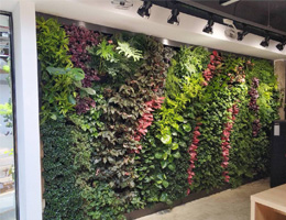 仿真植物墻不需要養(yǎng)護(hù),效果持久,易于表達(dá)設(shè)計(jì)效果,作品層次分明、變化多、成本低、方式靈活。不受環(huán)境及植物習(xí)性限制對(duì)創(chuàng)作更為自由,適用于光線強(qiáng)度低,通風(fēng)效果差等不適合植物生長(zhǎng)的地方。