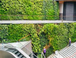 室外垂直綠化墻能將大自然風景引入繁雜的城市,是人造結構與自然風光完美的結合體。