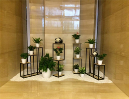 在娛樂設(shè)施附近,如飯店、游泳池、健身中心等位置,則可以考慮采用大小植物盆栽組合搭配擺放,作為空間的點綴。