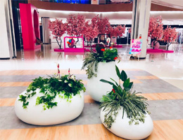 室內的植物租擺環境比較復雜。需要分為不同的區域,比如商場的走廊、電梯、大廳和商店門口等,在不同的季節結合商場的促銷活動等,設計不同的方案。