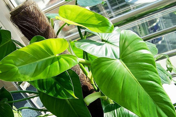 也叫喜林芋,我們??吹牡降木褪侵虚g有個(gè)桿子突出來,四周纏滿了葉子,因?yàn)樗桥逝佬缘闹参铮~子是順著桿子走的。綠色非常純正,看起來就像綠寶石的寶石那樣閃耀。