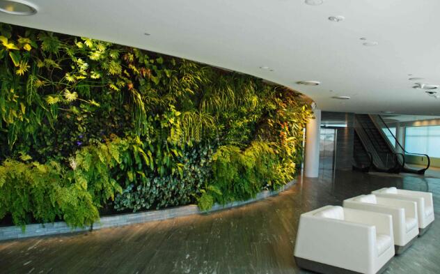 植物和基質對聲音勻具有較強的吸收功能,綠植墻具有噪聲緩沖(由40dB 決定)的功效,能為我們的家和工作場所極大減少外部噪聲和振動。植物墻也極大減少大廈的聲反射。